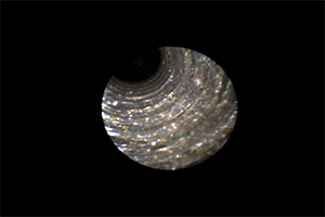 Even if you feel that the image from an endoscope with a built-in camera at the end of the cable is grainy, the clarity will be improved by using a borescope + high-sensitivity/wide dynamic range video camera.