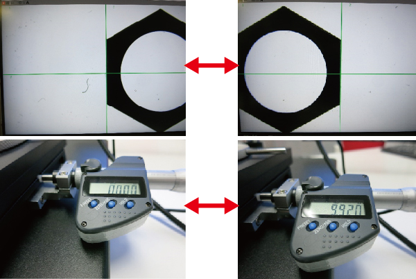 (3) Move the XY stage with a micrometer until the cross line is the end point of measurement.