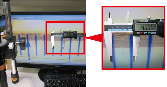 In the digital microscope pictured below, 1mm is displayed as 40mm on the monitor.